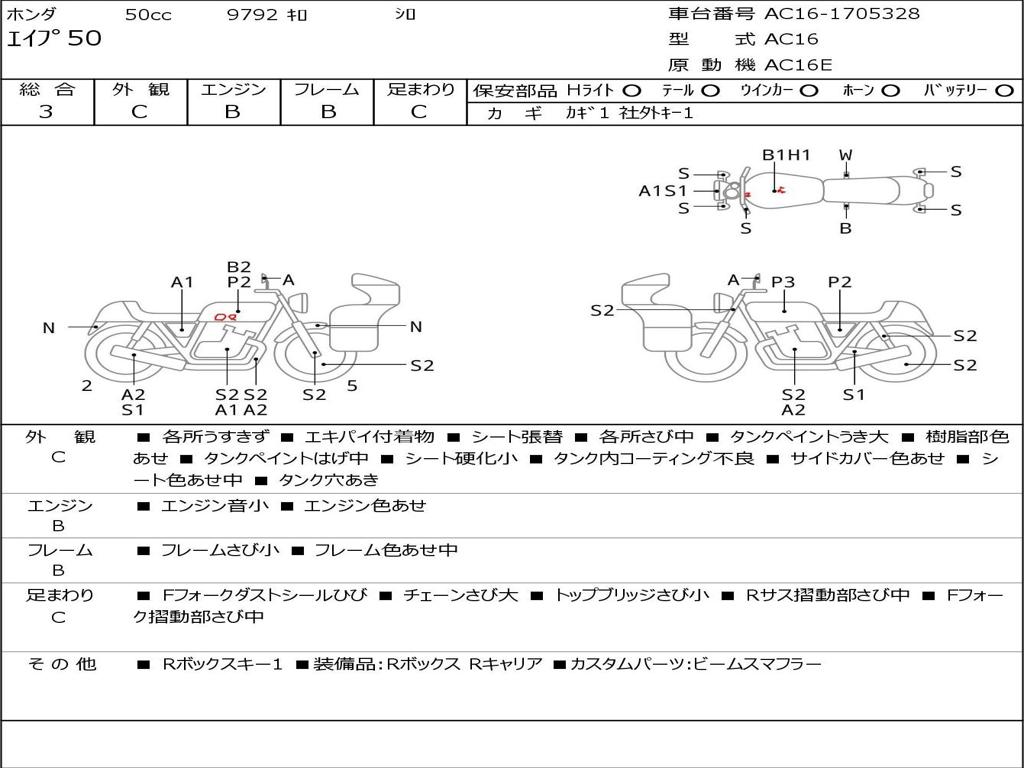 | Номер рамы / VIN | AC16-1705328 |