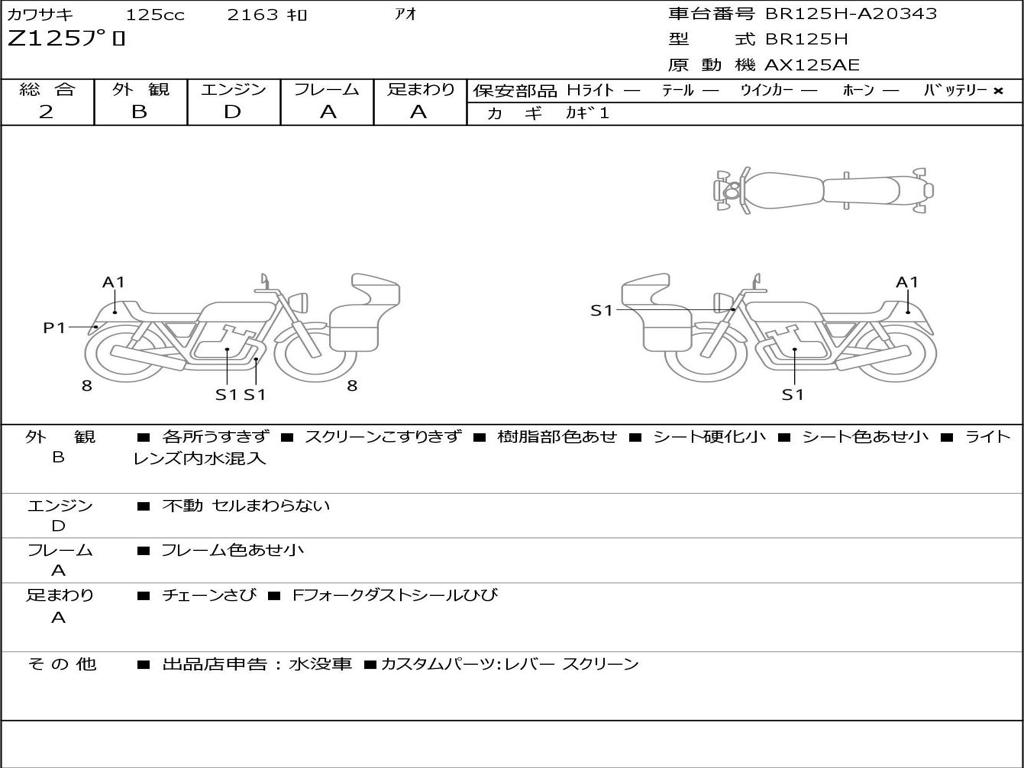 | Номер рамы / VIN | BR125H-A20343 |
