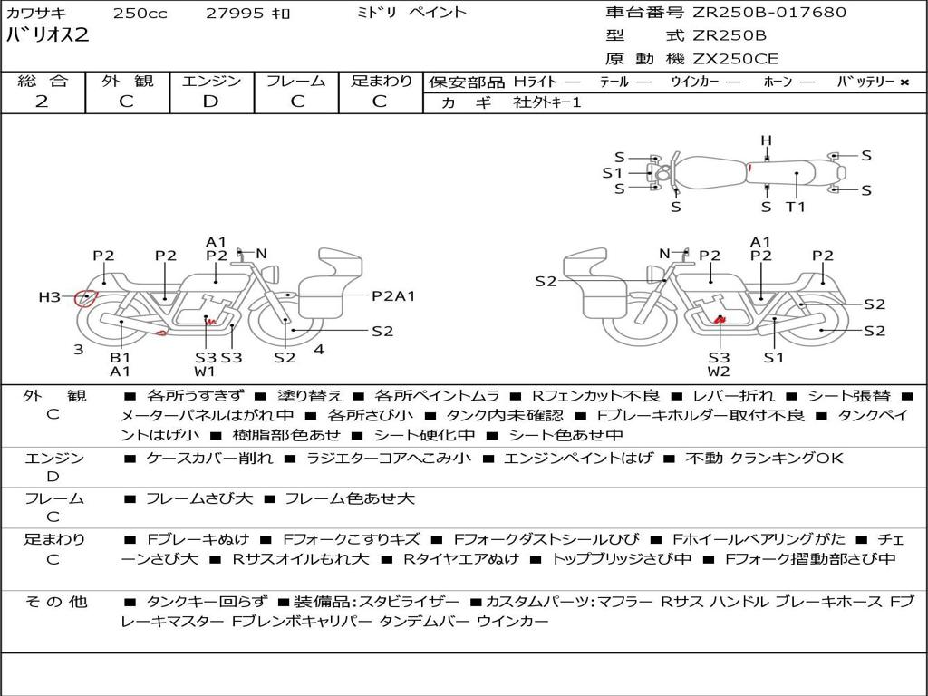 | Номер рамы / VIN | ZR250B-017680 |