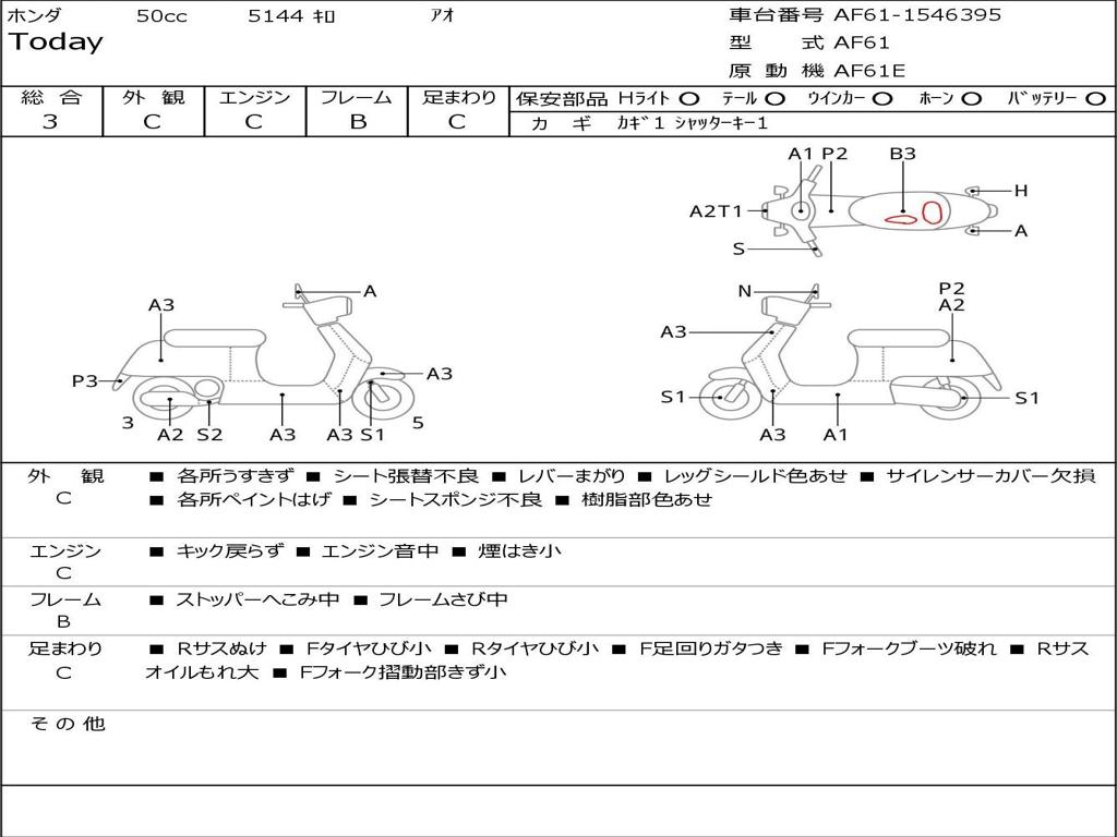 | Номер рамы / VIN | AF61-1546395 |