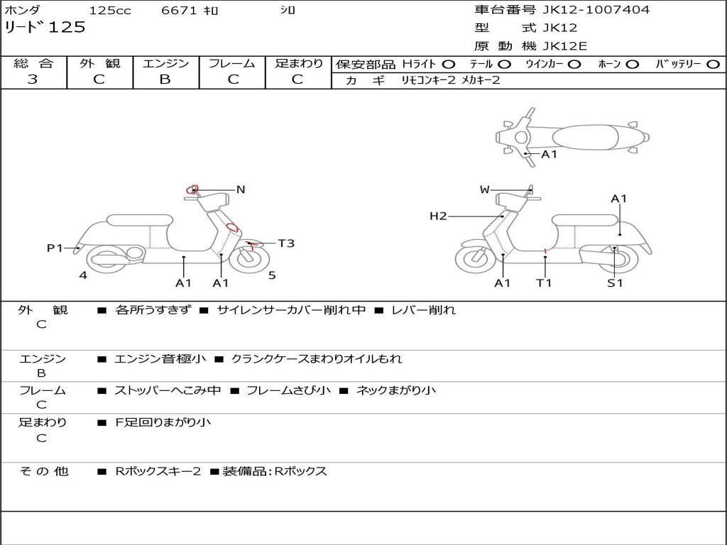| Номер рамы / VIN | JK12-1007404 |