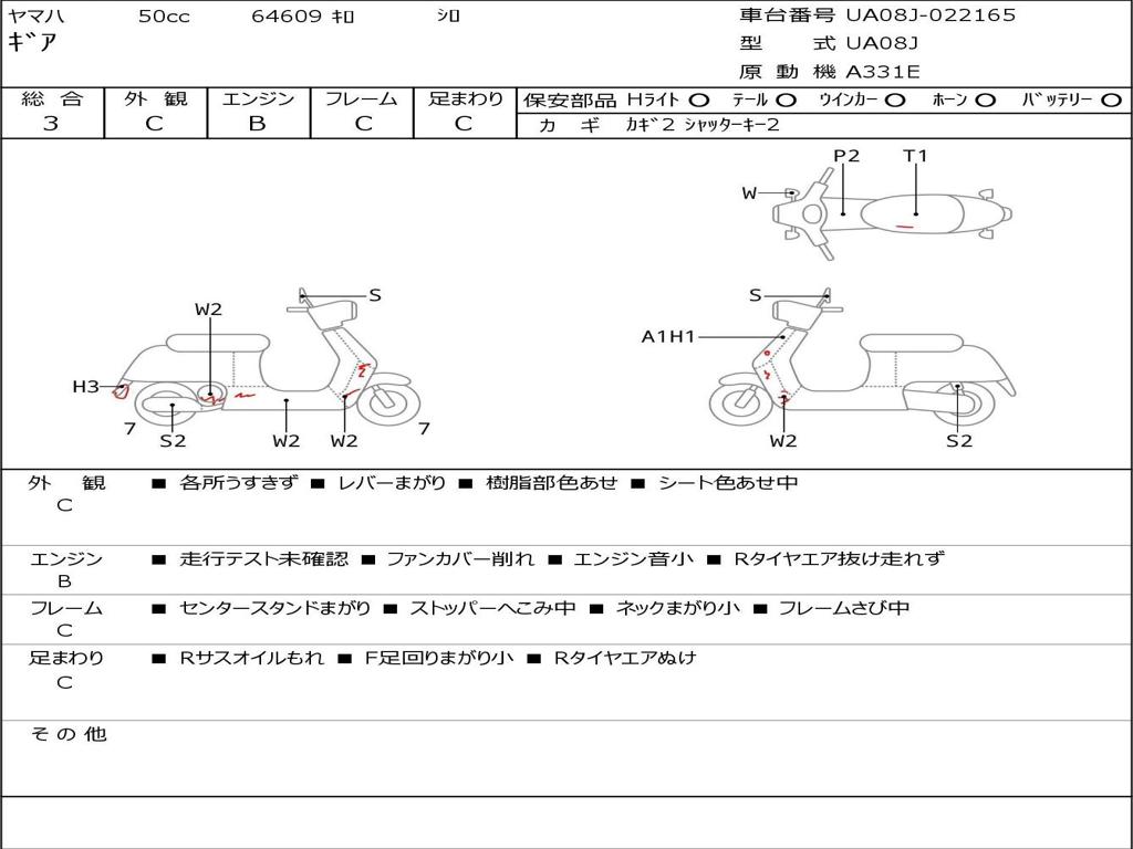 | Номер рамы / VIN | UA08J-022165 |
