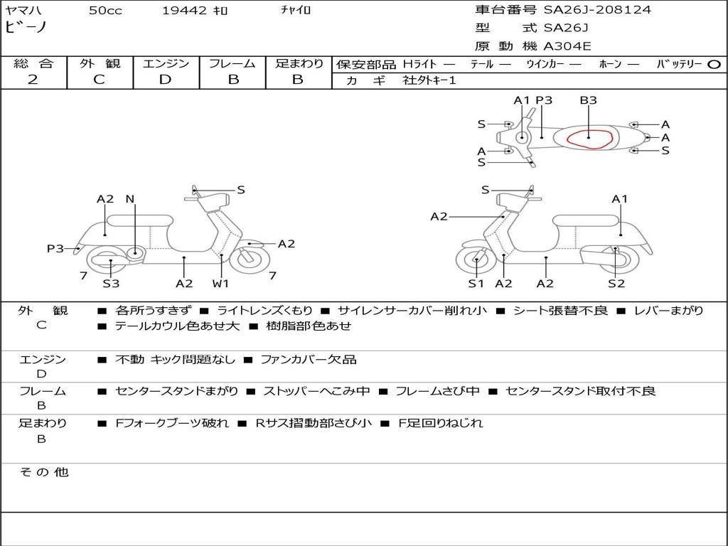 | Номер рамы / VIN | SA26J-208124 |