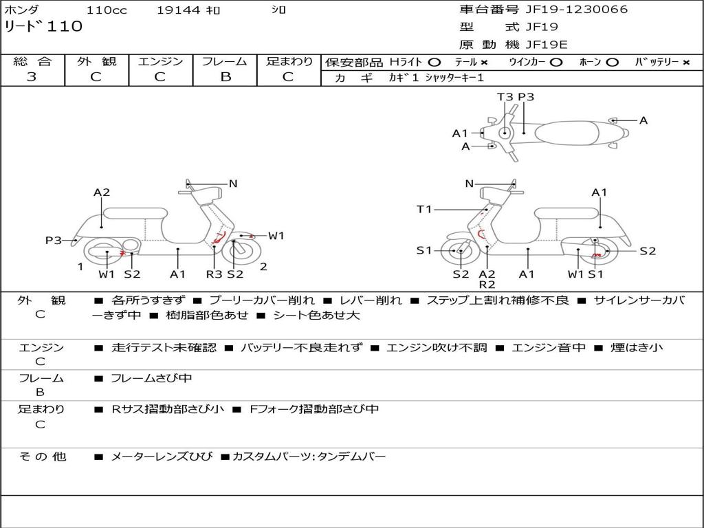 | Номер рамы / VIN | JF19-1230066 |