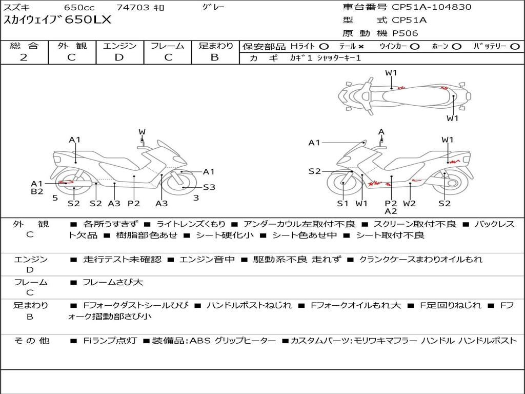 Номер рамы / VIN | CP51A-104830 |