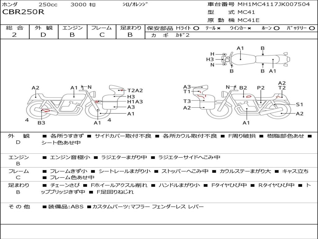 | Номер рамы / VIN | MH1MC4117JK007504 |