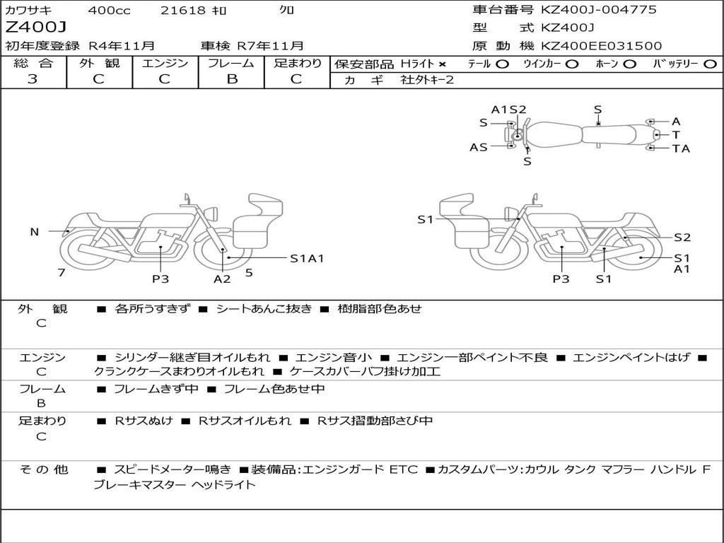 | Номер рамы / VIN | KZ400J-004775 |