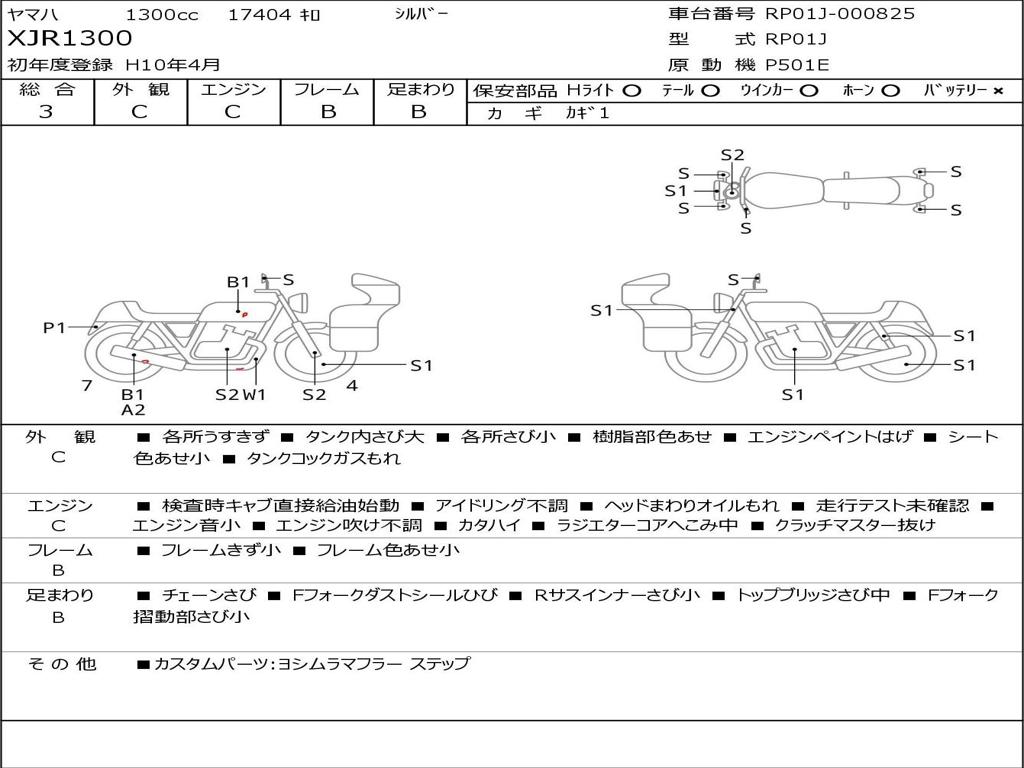 | Номер рамы / VIN | RP01J-000825 |