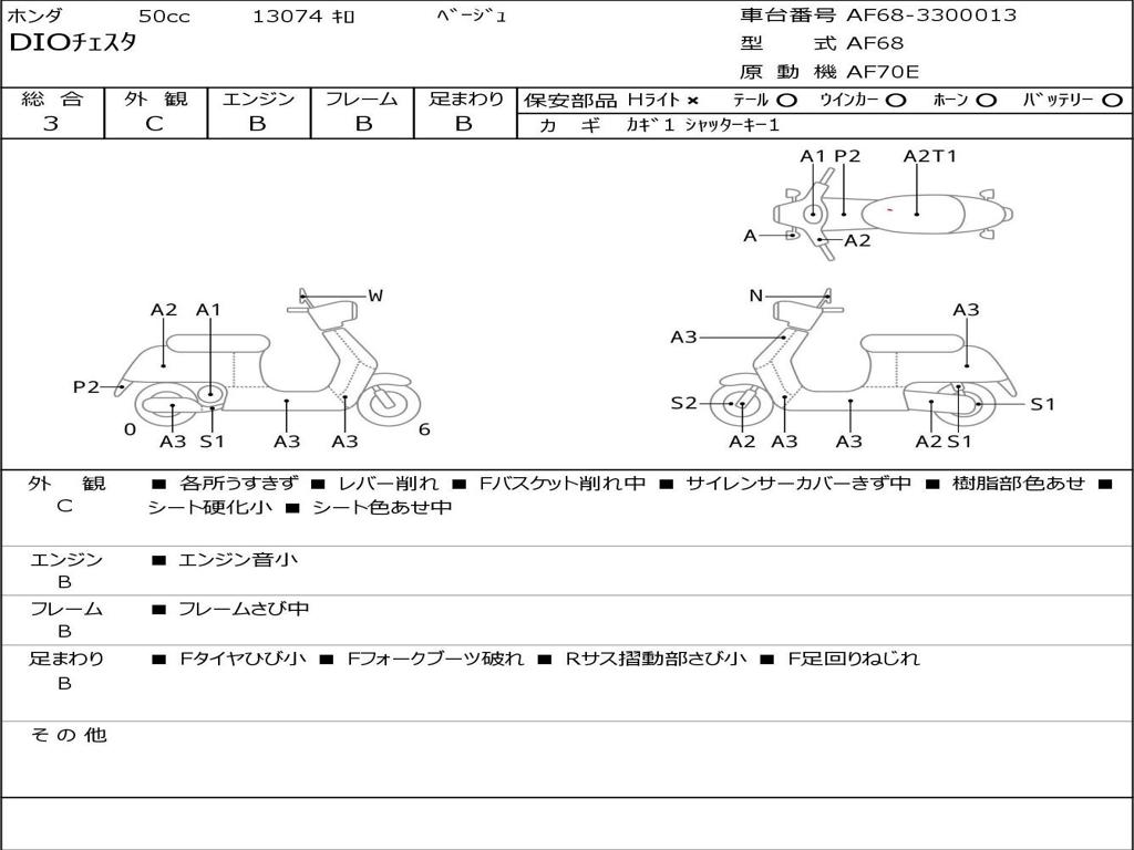 | Номер рамы / VIN | AF68-3300013 |