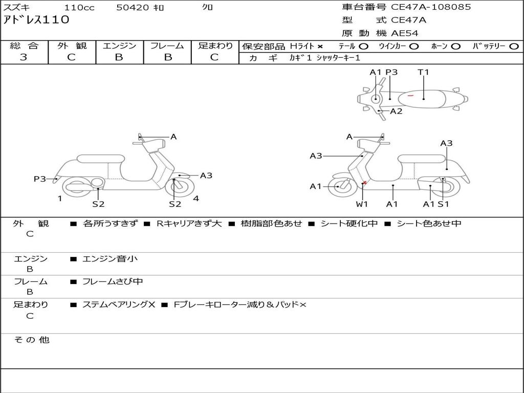 | Номер рамы / VIN | CE47A-108085 |