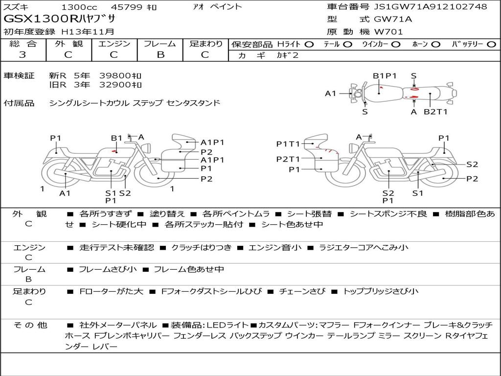 | Номер рамы / VIN | JS1GW71A912102748 |