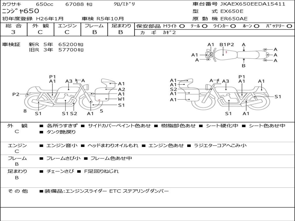 | Номер рамы / VIN | JKAEX650EEDA15411 |
