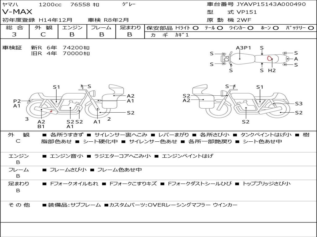 | Номер рамы / VIN | JYAVP15143A000490 |