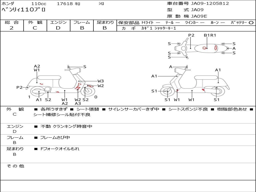 | Номер рамы / VIN | JA09-1205812 |