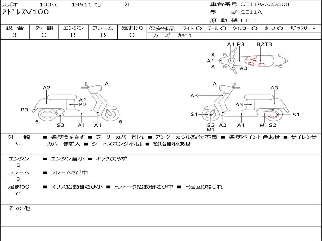 | Номер рамы / VIN | CE11A-235808 |
