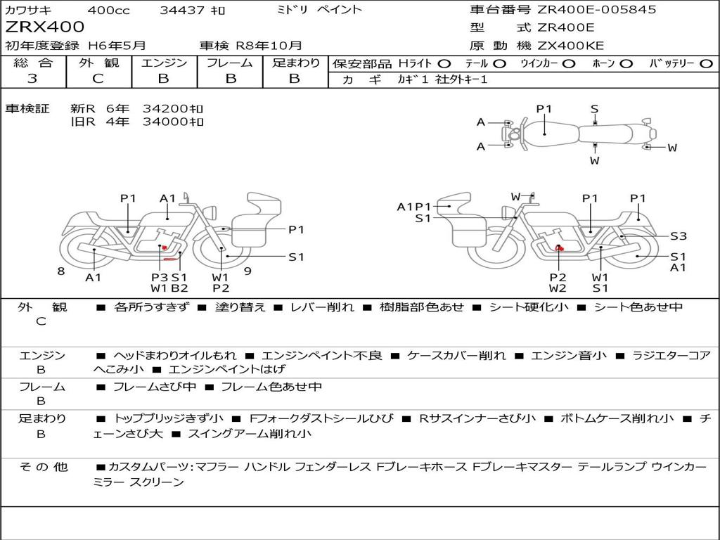 | Номер рамы / VIN | ZR400E-005845 |