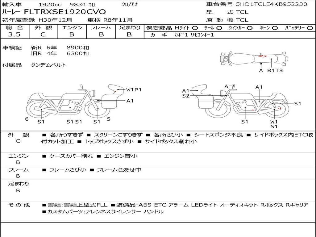 | Номер рамы / VIN | 5HD1TCLE4KB952230 |