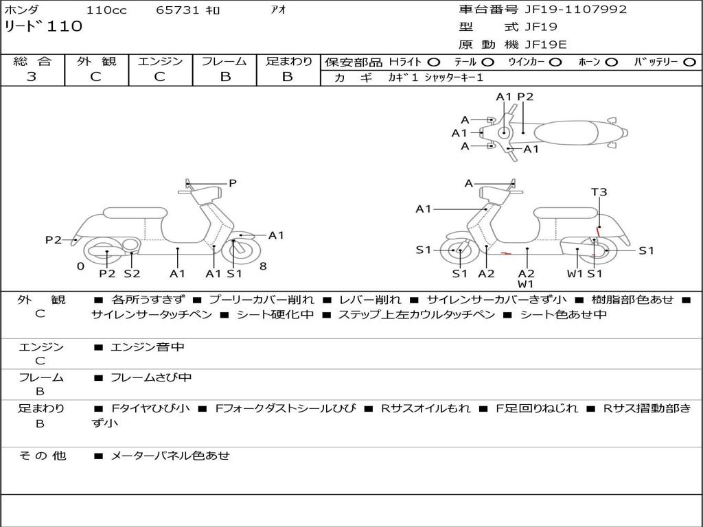 | Номер рамы / VIN | JF19-1107992 |