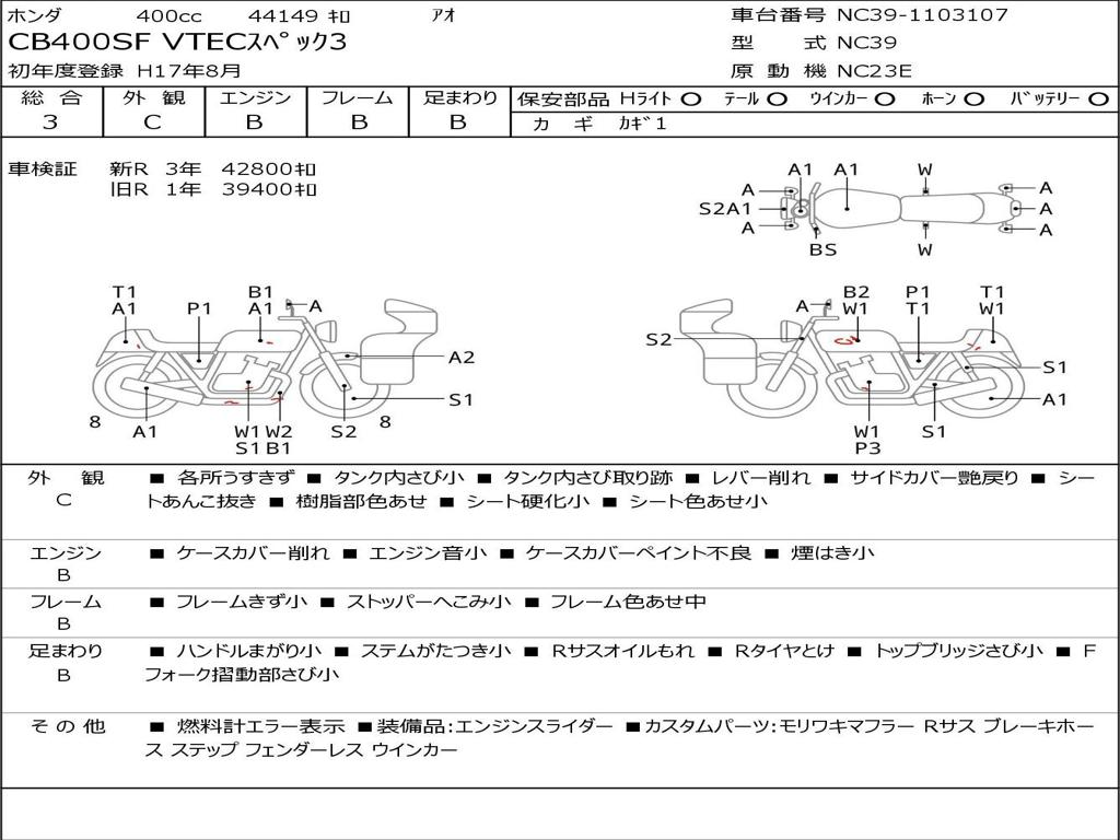 | Номер рамы / VIN | NC39-1103107 |