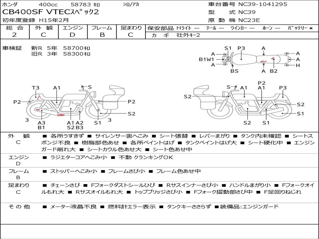 | Номер рамы / VIN | NC39-1041295 |