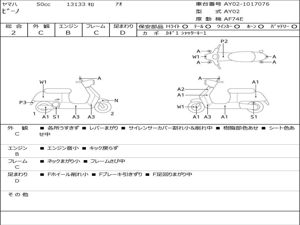 | Номер рамы / VIN | AY02-1017076 |