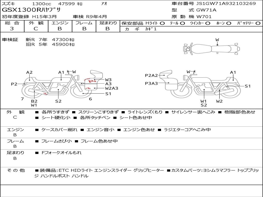 | Номер рамы / VIN | JS1GW71A932103269 |
