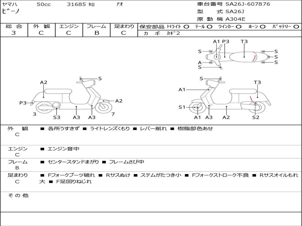 | Номер рамы / VIN | SA26J-607876 |