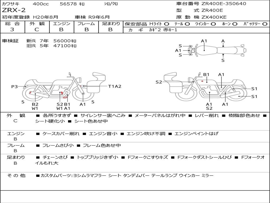 | Номер рамы / VIN | ZR400E-350640 |