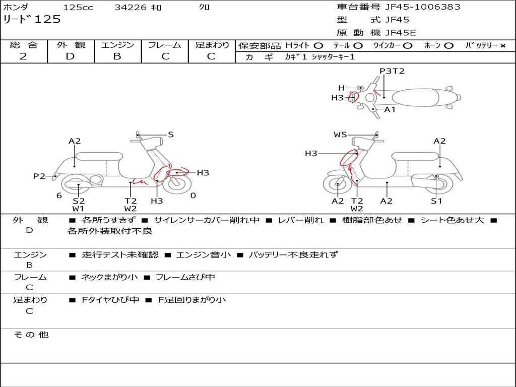 | Номер рамы / VIN | JF45-1006383 |