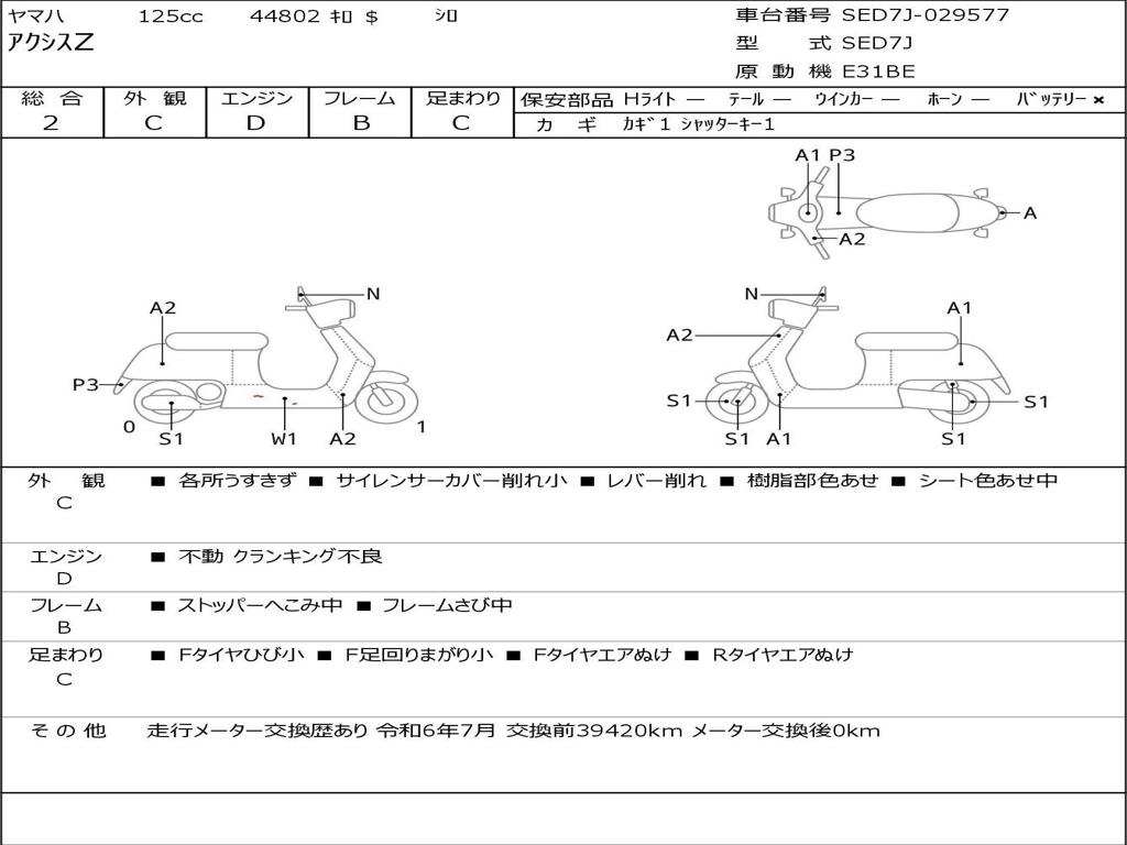 | Номер рамы / VIN | SED7J-029577 |