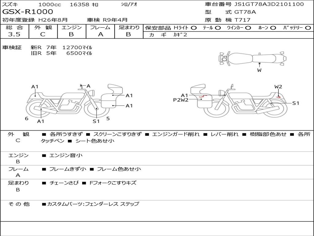 | Номер рамы / VIN | JS1GT78A3D2101100 |