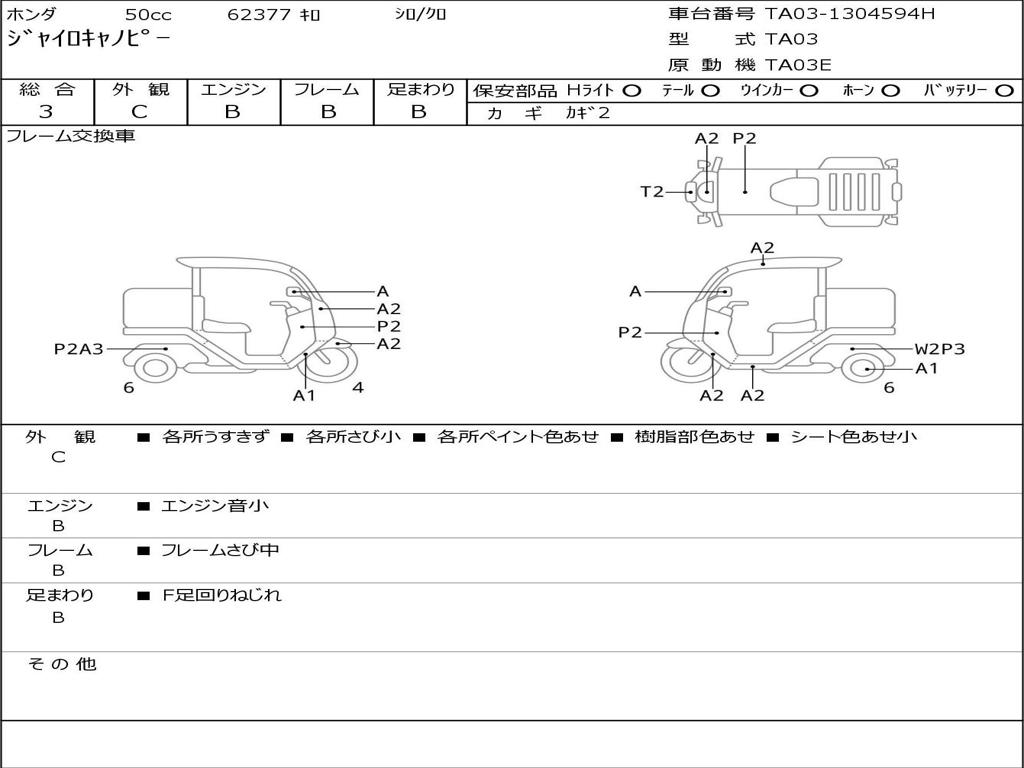 | Номер рамы / VIN | TA03-1304594H |