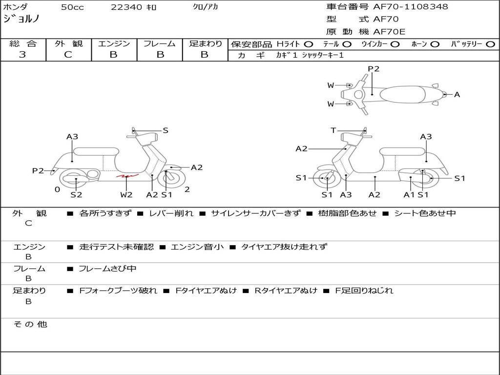 | Номер рамы / VIN | AF70-1108348 |