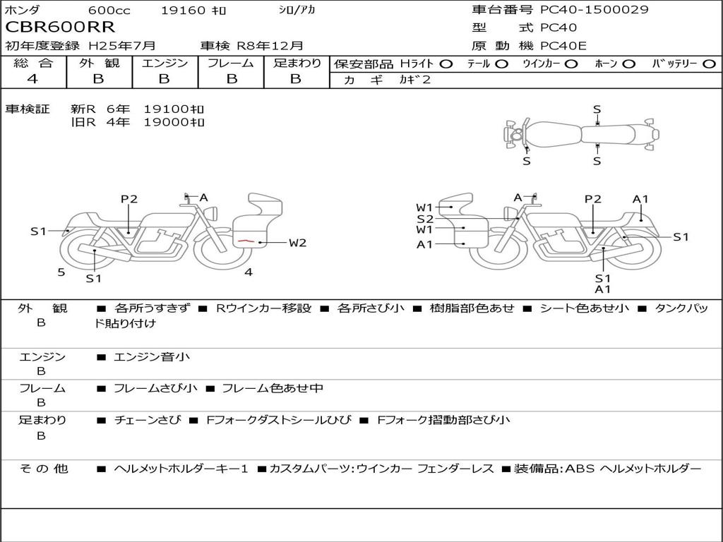 | Номер рамы / VIN | PC40-1500029 |