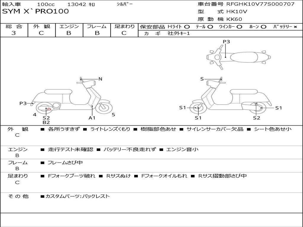 | Номер рамы / VIN | RFGHK10V77S000707 |