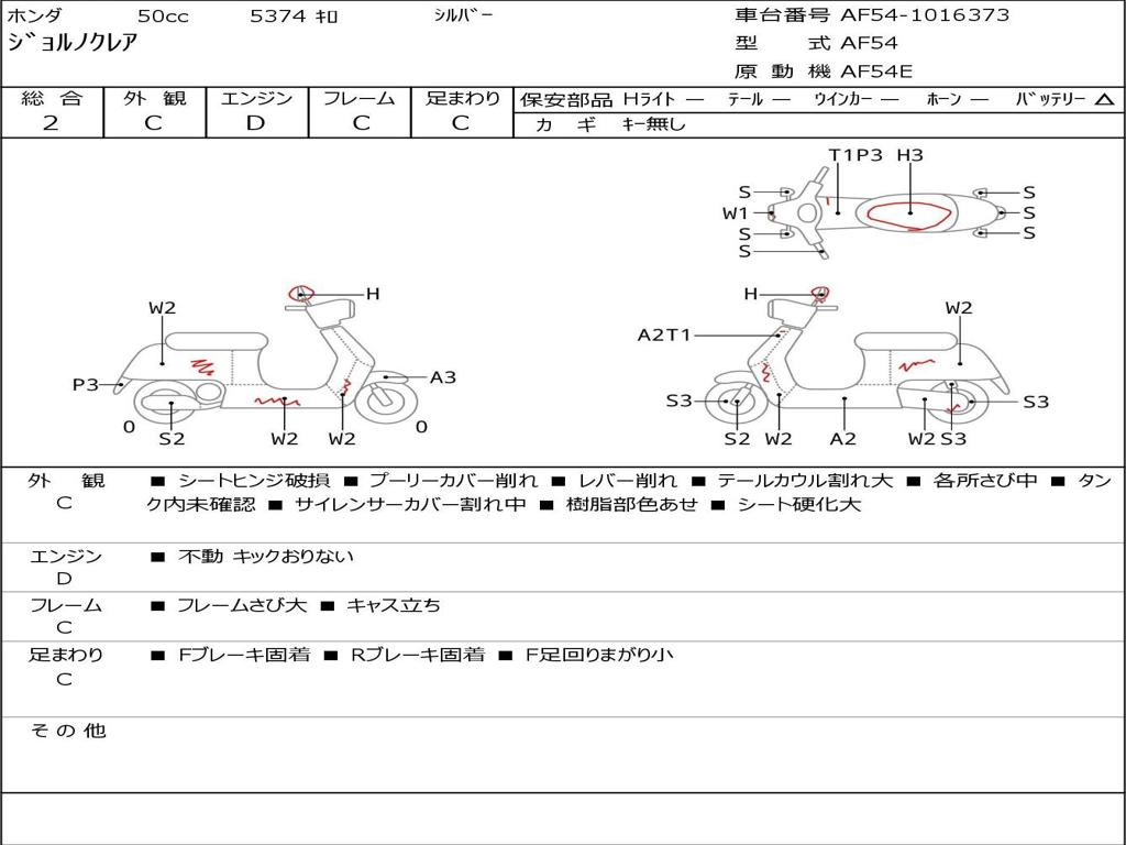 | Номер рамы / VIN | AF54-1016373 |