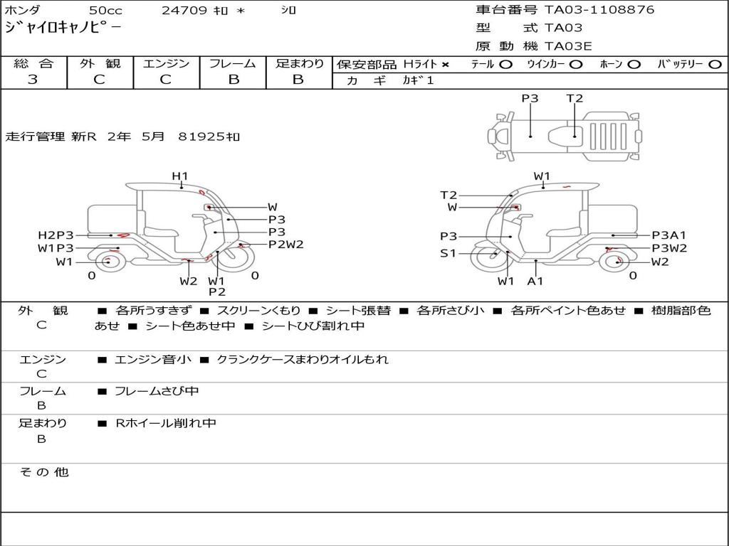 | Номер рамы / VIN | TA03-1108876 |