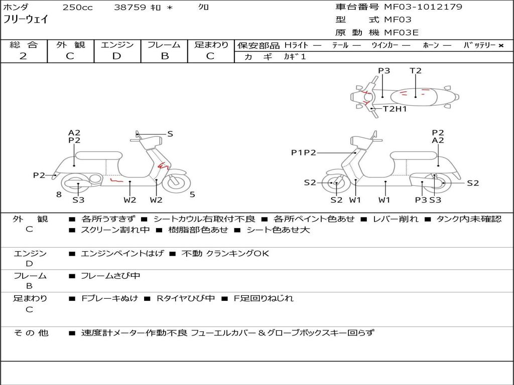 | Номер рамы / VIN | MF03-1012179 |