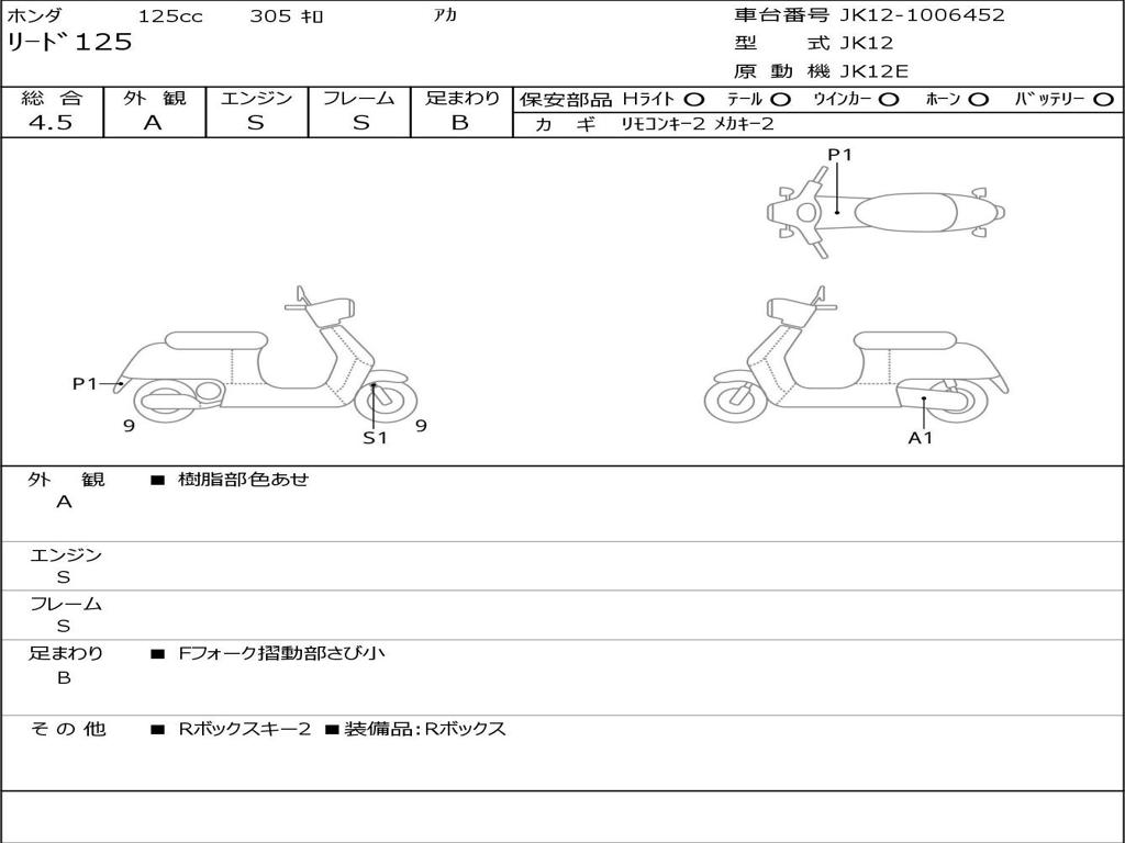 | Номер рамы / VIN | JK12-1006452 |