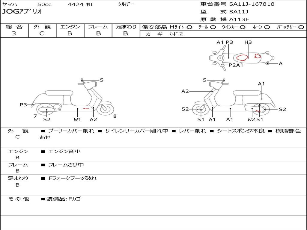 | Номер рамы / VIN | SA11J-167818 |