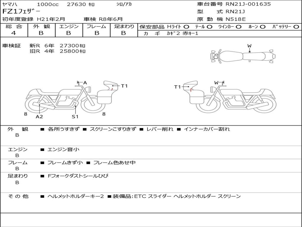 | Номер рамы / VIN | RN21J-001635 |