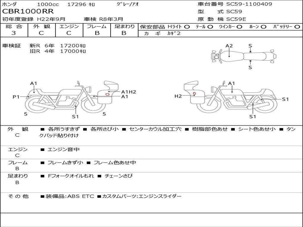 | Номер рамы / VIN | SC59-1100409 |