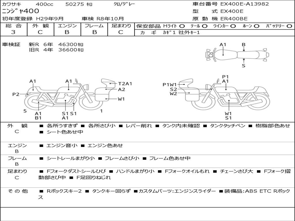 | Номер рамы / VIN | EX400E-A13982 |
