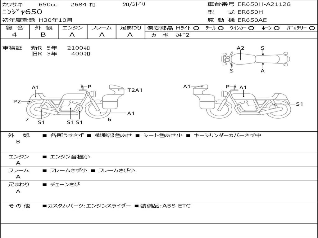 | Номер рамы / VIN | ER650H-A21128 |