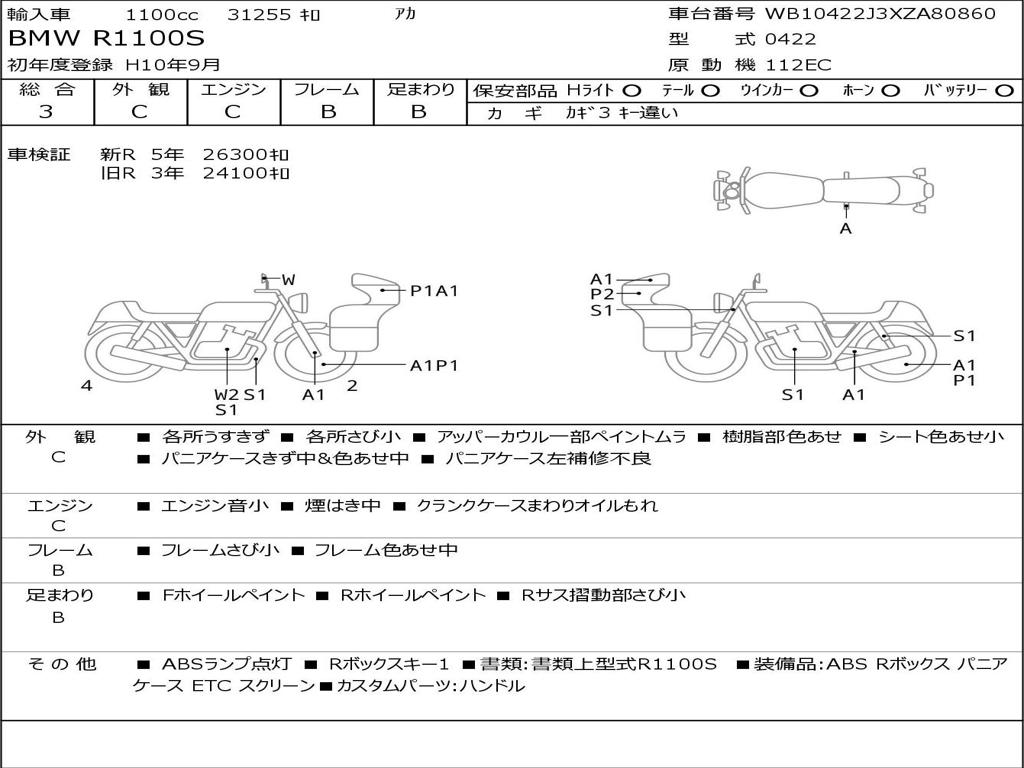 | Номер рамы / VIN | WB10422J3XZA80860 |