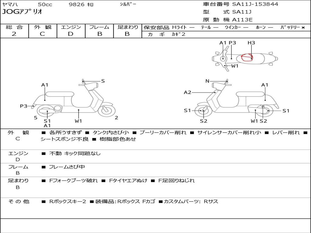 | Номер рамы / VIN | SA11J-153844 |