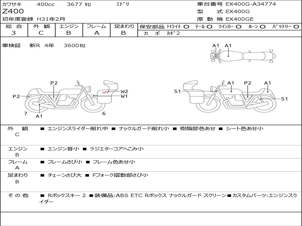 | Номер рамы / VIN | EX400G-A34774 |