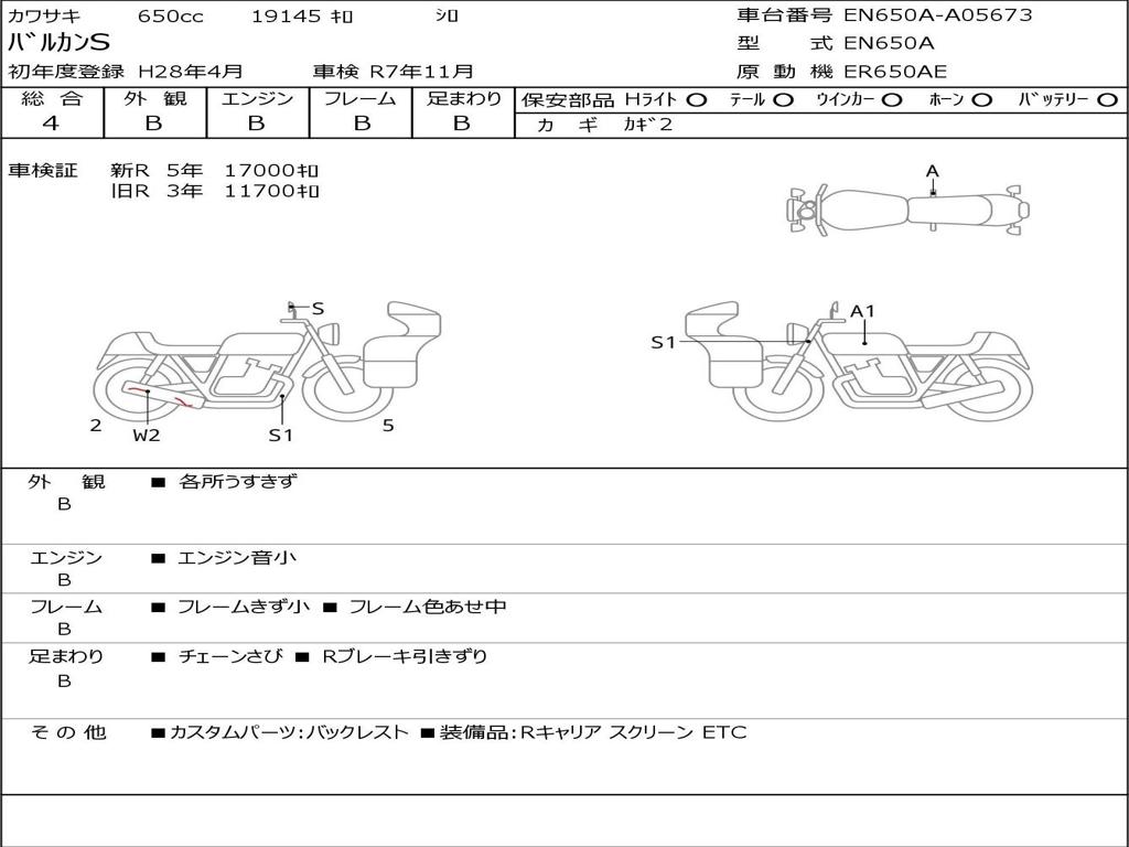 | Номер рамы / VIN | EN650A-A05673 |