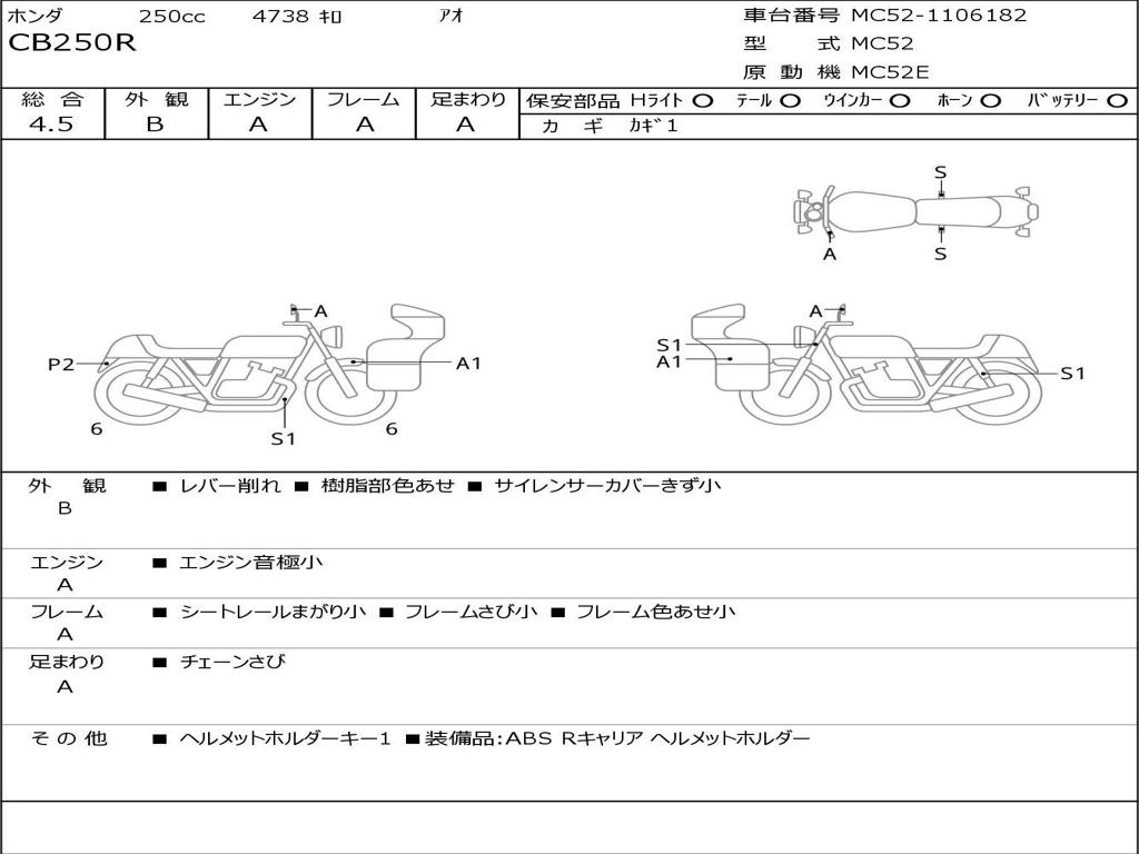| Номер рамы / VIN | MC52-1106182 |