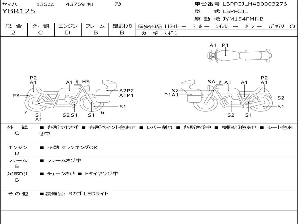 | Номер рамы / VIN | LBPPCJLH4B0003276 |